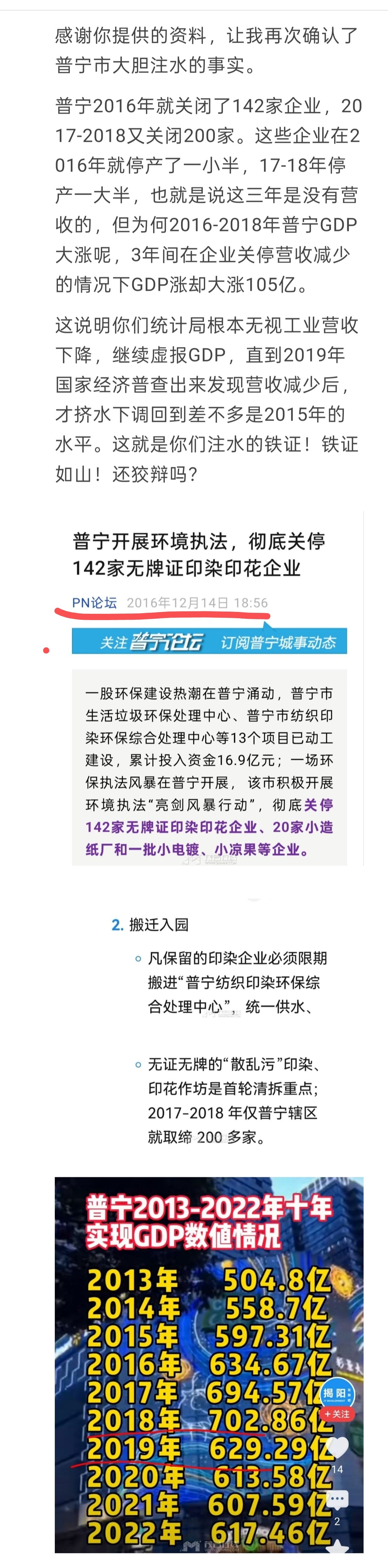 成哥 发表于 2025-10-8 20:07 感谢你提供的资料,让我再次确认了普宁市大胆注水的事实。 普宁2016年就关闭了142家企业,2017-2018又关 ...