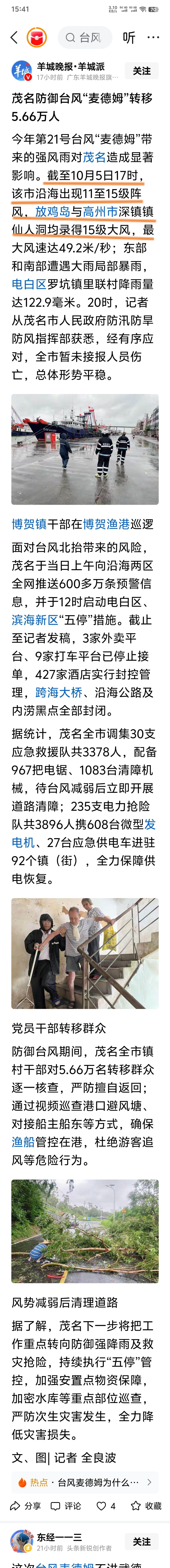浮生过客 发表于 2025-10-7 07:16 上楼的报道茂名沿海有十二级平均风,你敢说茂名市区有十二级风不?还说什么可以忽略,你真是屎坑石,又硬 ...