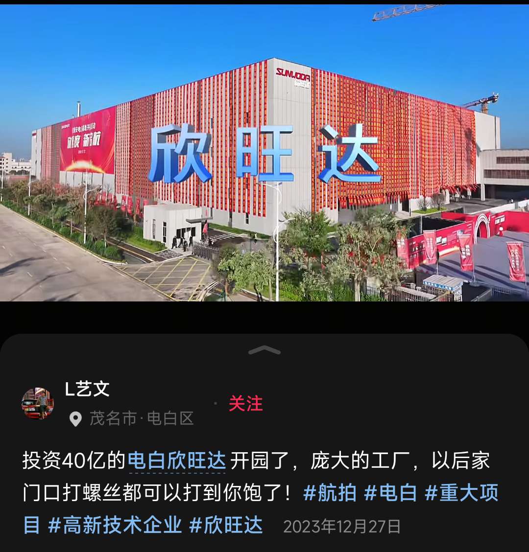 “产城融合”是什么?在政策上屡次提到?原来是大杀招!珠三角的城中村环境也不美观,为何能吸引众多人口汇聚?根本原因就是“工业”,“产业园”汇聚众多大型企业,增加就业岗位,附近人口自然就汇聚在一起!不敢说超越珠三角和深圳,有着腾讯、华为等大型企业的产业园?茂名也应该新建多几个新的产业园,还能解决年轻人外流问题!产城融合,职住平衡,下面是茂名新城附近的电白“产业园”,已经拥有了不少企业,茂名为数不多的上市公司,“欣旺达”也在其中: