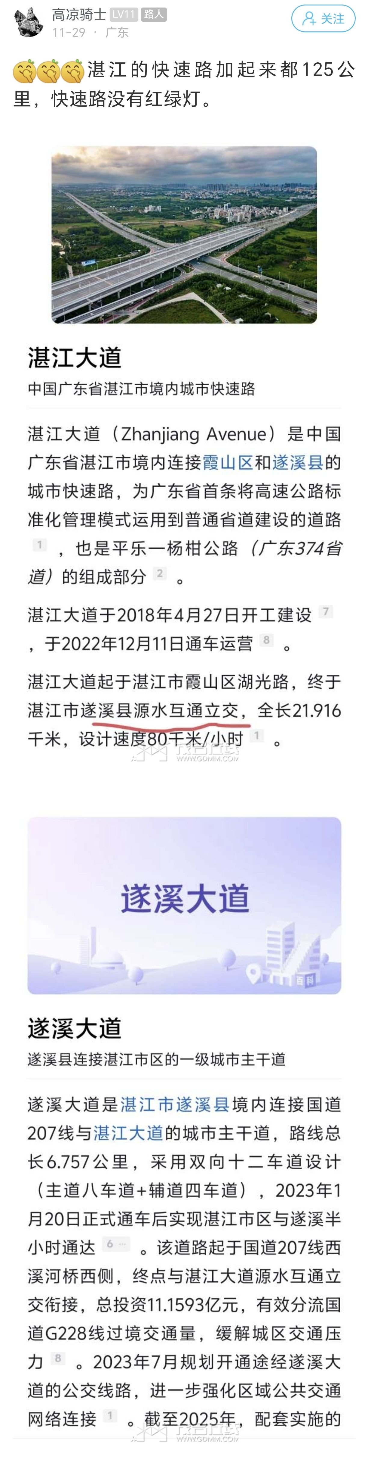 不重要 发表于 2025-12-2 17:56 等下秋林仔跳出来,吹不足22公里的湛江大道长达25公里。