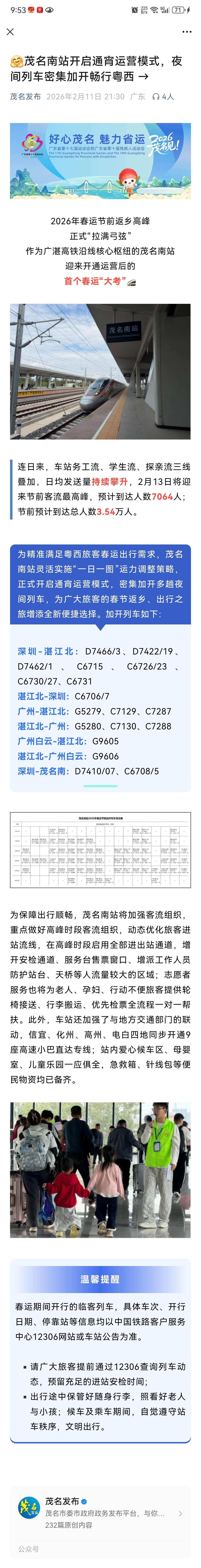 KB08 发表于 2026-2-12 11:25 这是深圳站到茂名南站的,走旧广深线和新广湛线的车。深圳北站走广深港线经广州南到茂名站仍然没有加车, ...