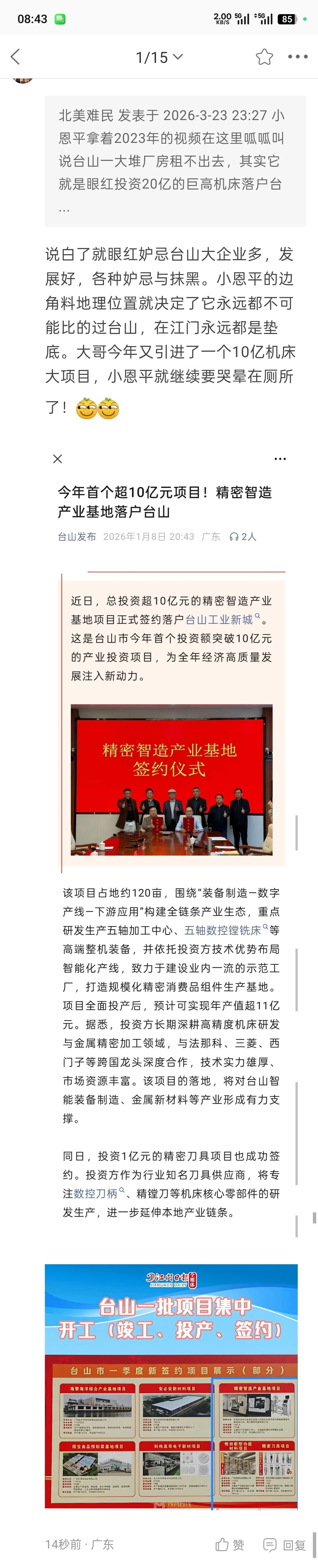 北美难民 发表于 2026-3-23 21:20 @阿富他爸 难怪你这个白C在论坛拼命的贬低台山的制造业,原来是眼红巨高机床这个投资20亿的龙头企业落户台 ...