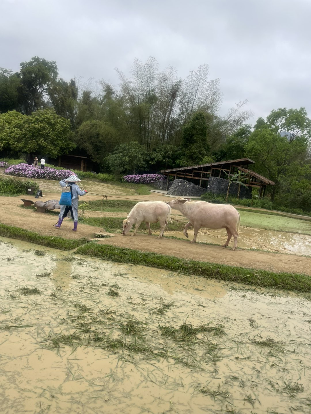 这组照片拍摄于广西崇左市的明仕田园,这里被誉为“小桂林”,也是《花千骨》的取景地。画面展现了典型的喀斯特地貌与田园风光交织的美景,具体解读如下: