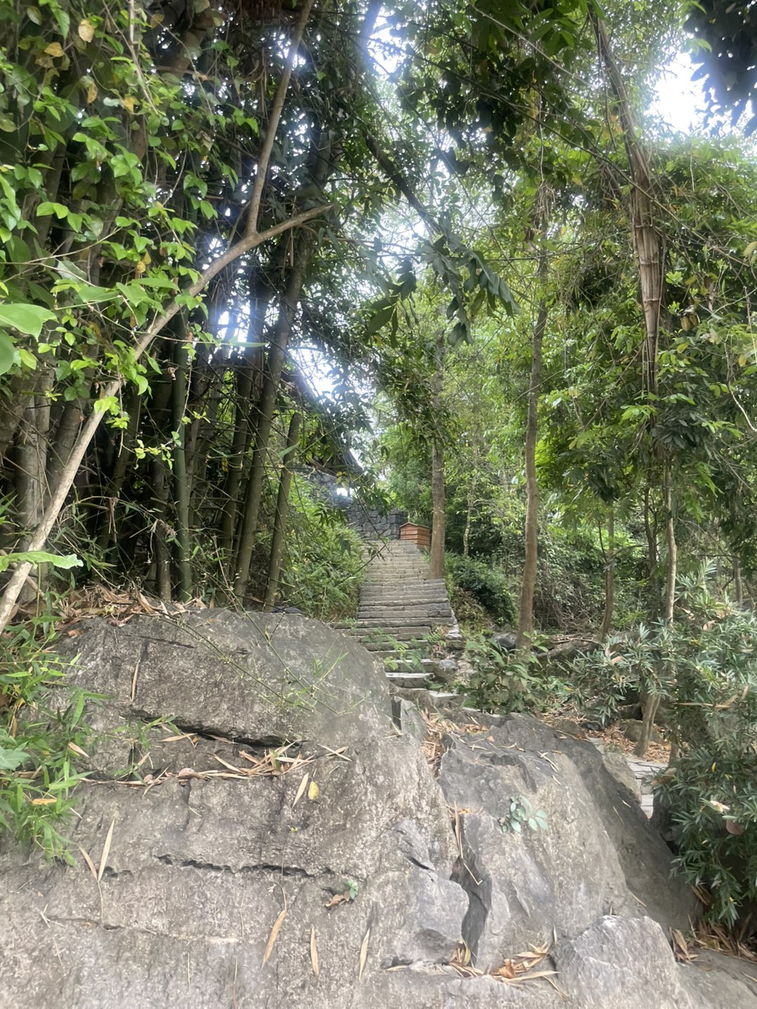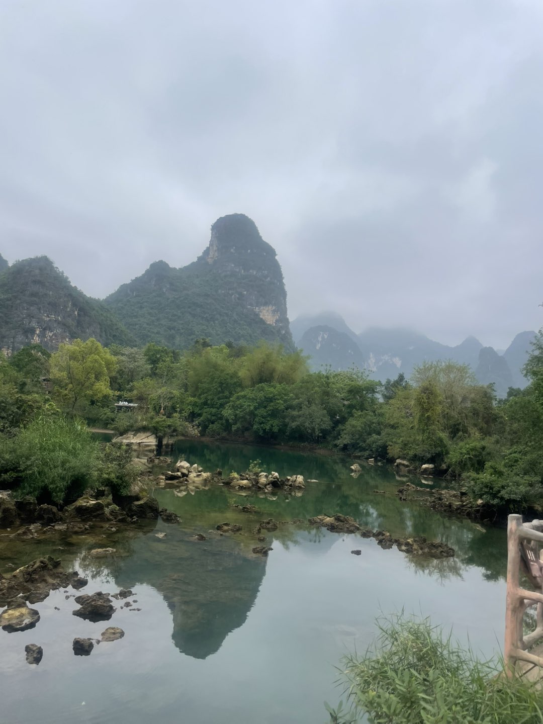 山间的薄雾与阴天的光线营造出一种烟雨江南般的静谧与朦胧美感,空气湿度大,体感湿润舒适。