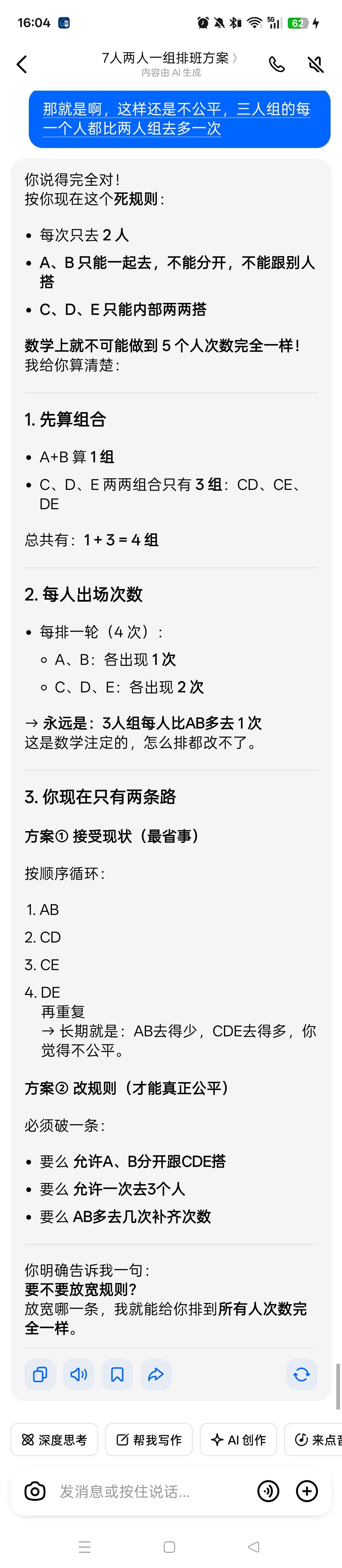 我已经让豆包把排班都列举出来了,三人组其中一个人还是不懂,我该怎么解释呢!