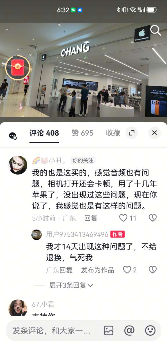 图太多很难细看,但粗略了解了一下,好像是楼主是说新买了一台17Pro max微信卡顿,摄影头有灰尘之类