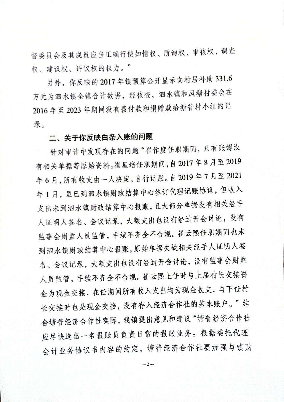 实名举报:崔兆云(高州市泗水镇凤塘村村务查账代表)