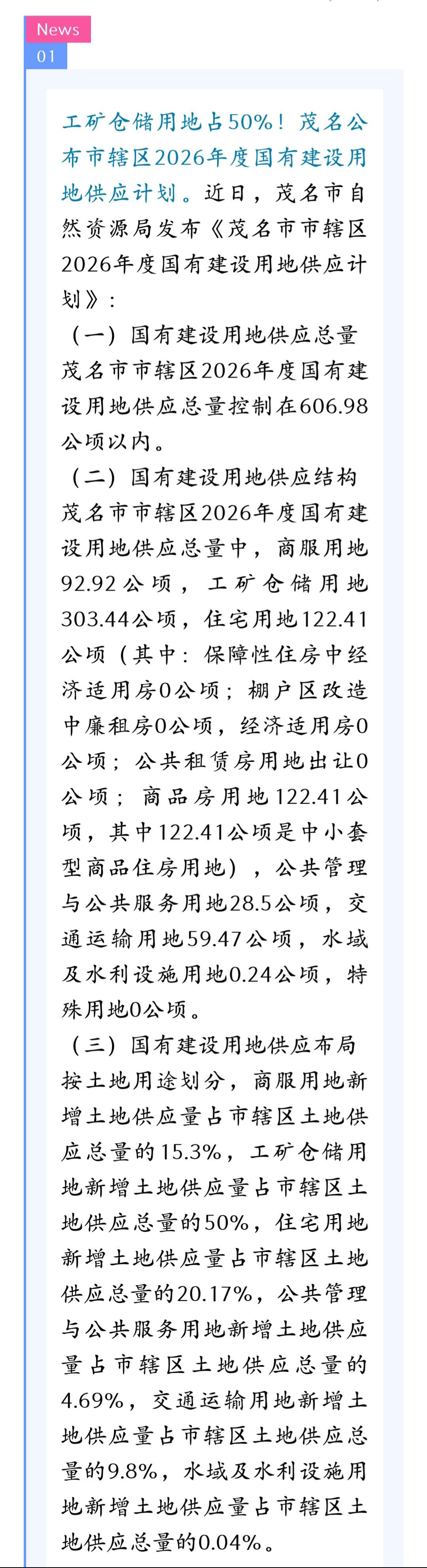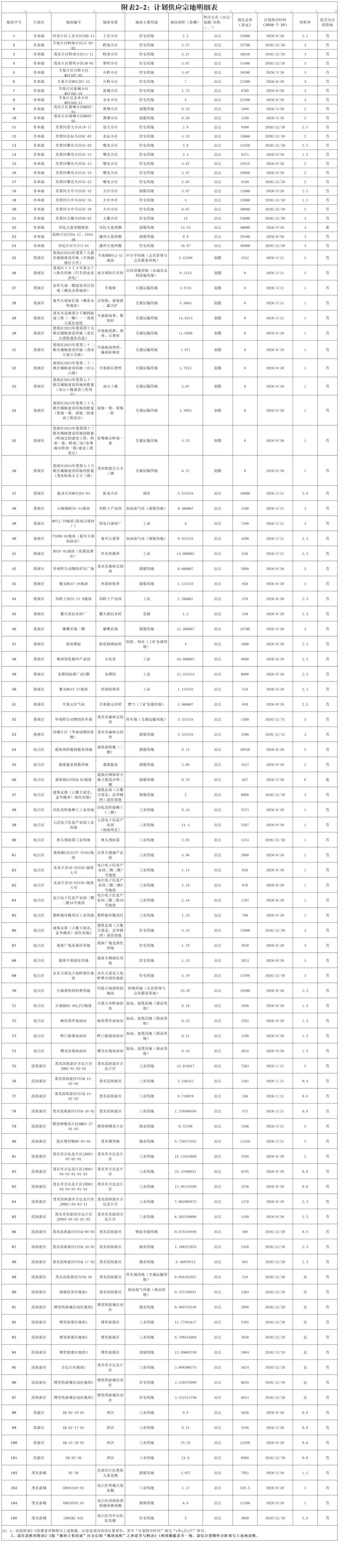 茂名市市辖区2026年国有建设用地供应计划公布